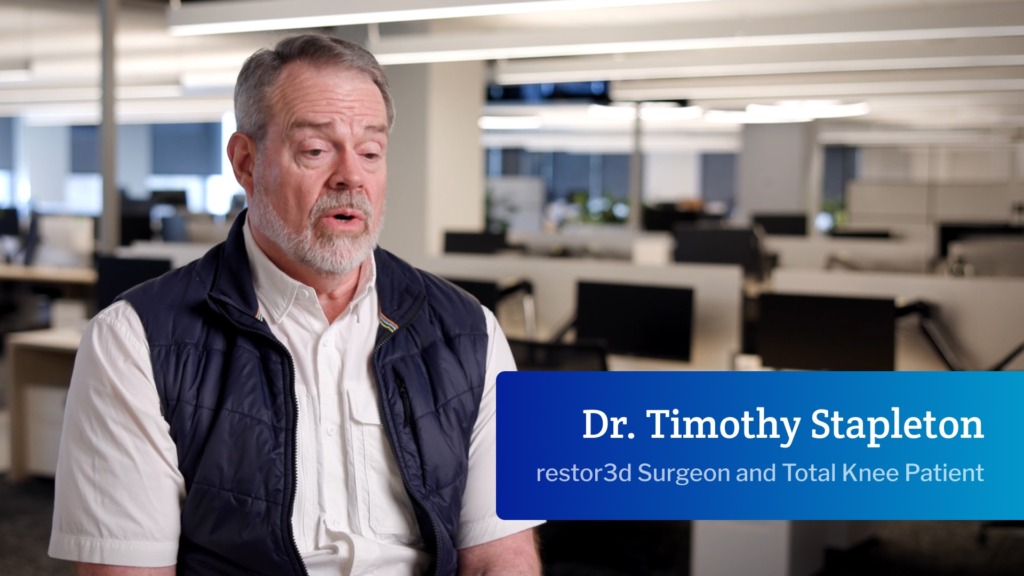 As an orthopedic surgeon at OrthoGeorgia, Dr. Timothy Stapleton spent decades performing total knee replacements before finding himself on the other side of the scalpel. After years of chronic pain that left him as the “caboose” of his family during outings, he chose to undergo a total knee replacement using restor3d’s personalized technology. By utilizing a patient-specific implant designed for his unique anatomy, Dr. Stapleton experienced firsthand the precision and recovery benefits he previously only described to his patients. Today, he uses his dual perspective as both a surgeon and a patient to champion the role of customized implants in restoring quality of life. His journey serves as a powerful testament to the idea that when a surgeon trusts a technology for their own body, patients can feel confident in its results.